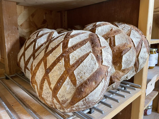 Farine d'Epeautre variété ancienne Oberkulmer, poussée en Vallée de Chevreuse, levain, gros sel, eau filtrée.